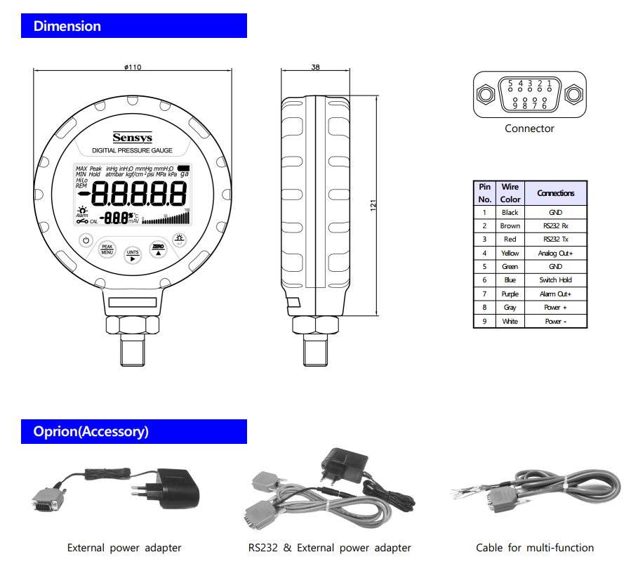 Đồng hồ áp suất hiển thị số Sensys SBP hoạt động bằng pin kiềm size AA x3, nguồn ngoài: 12~ 32VDC